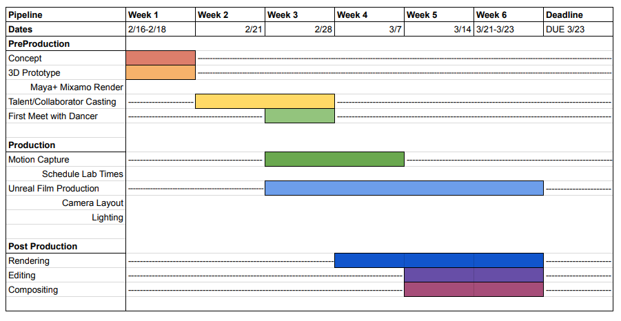 We also created a production timeline to make sure we were on schedule for the project.