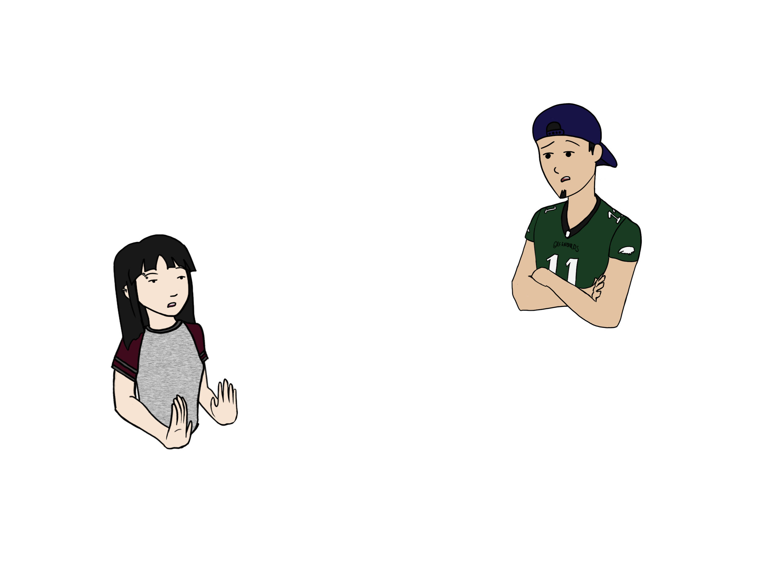 This week I added a few line drawings of people that will be added to the trash talking page and I also added video to the Heyzine comic for the presentation. I asked people for other ideas for people I could add and got suggestions to add a muscular male football player and a red headed male.