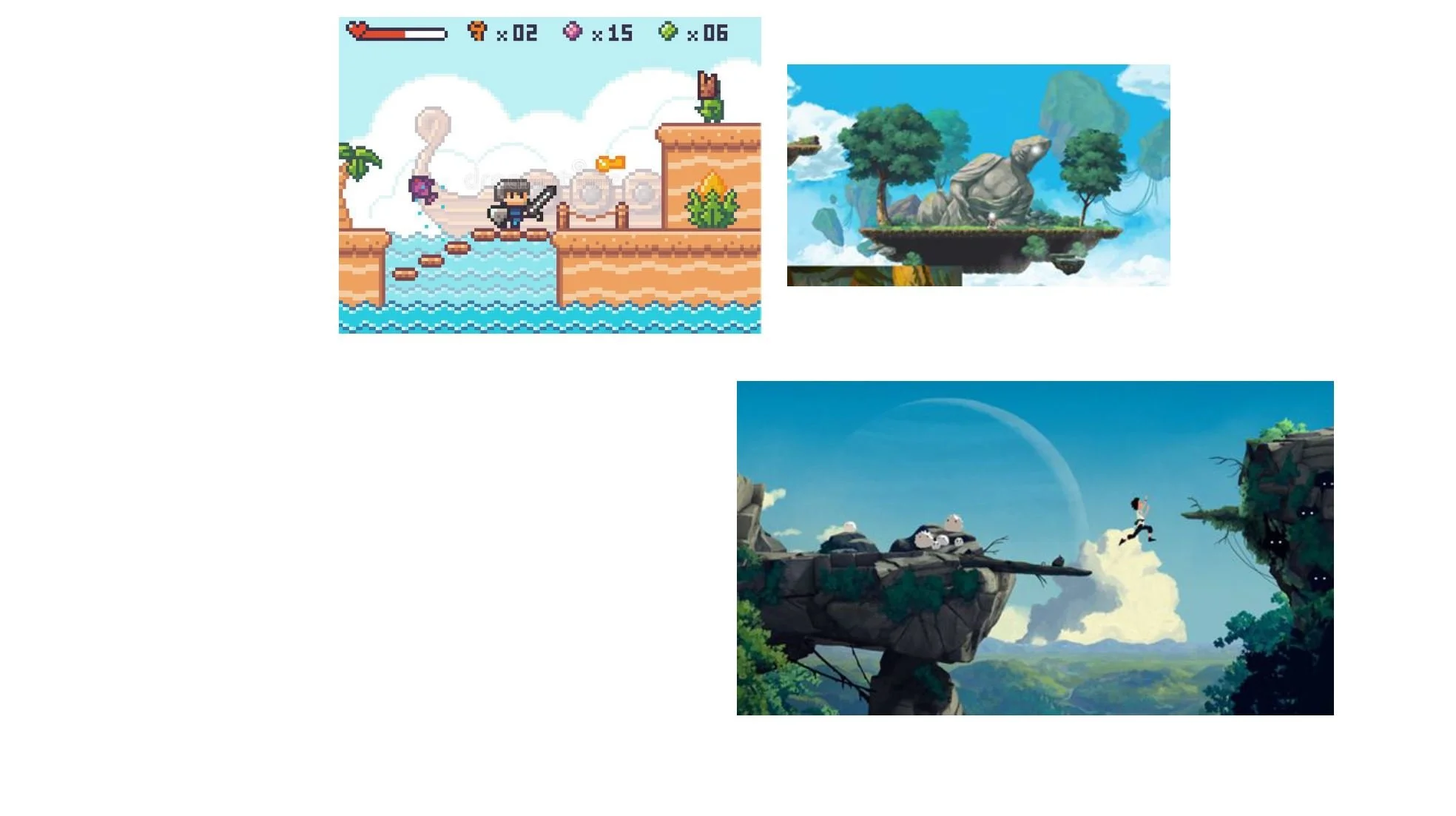 Some of the game’s design can aid with the story development. The original script for the story has the characters climbing a platform game in order to get to the gem at the top of the final platform. By design the game can only be completed with multiple characters abilities working together. The characters start out hostile and do not recognize that they need one another’s and instead are able to move forward through competition. The original game whitebox is very simple but the eventual layout of the