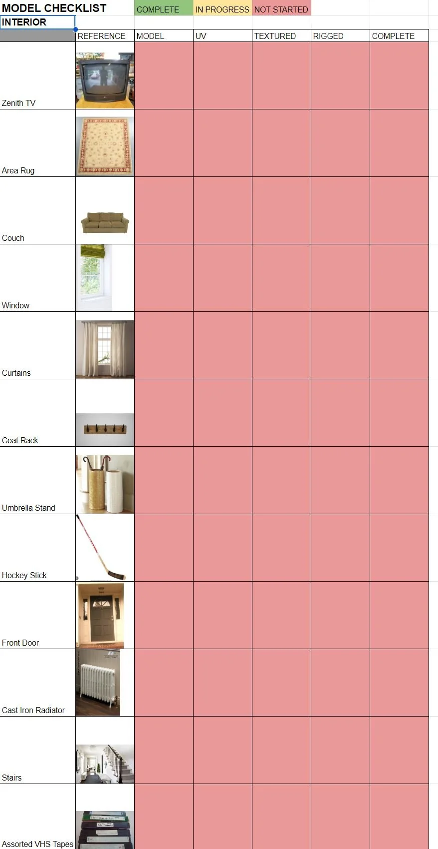Met with Emily Subr about Environment Modeling. Constructed interior modeling goals and found reference together for the interior.