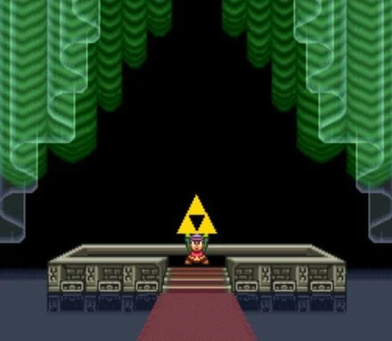 Link obtaining the Triforce after defeating Ganon in A Link to the Past.