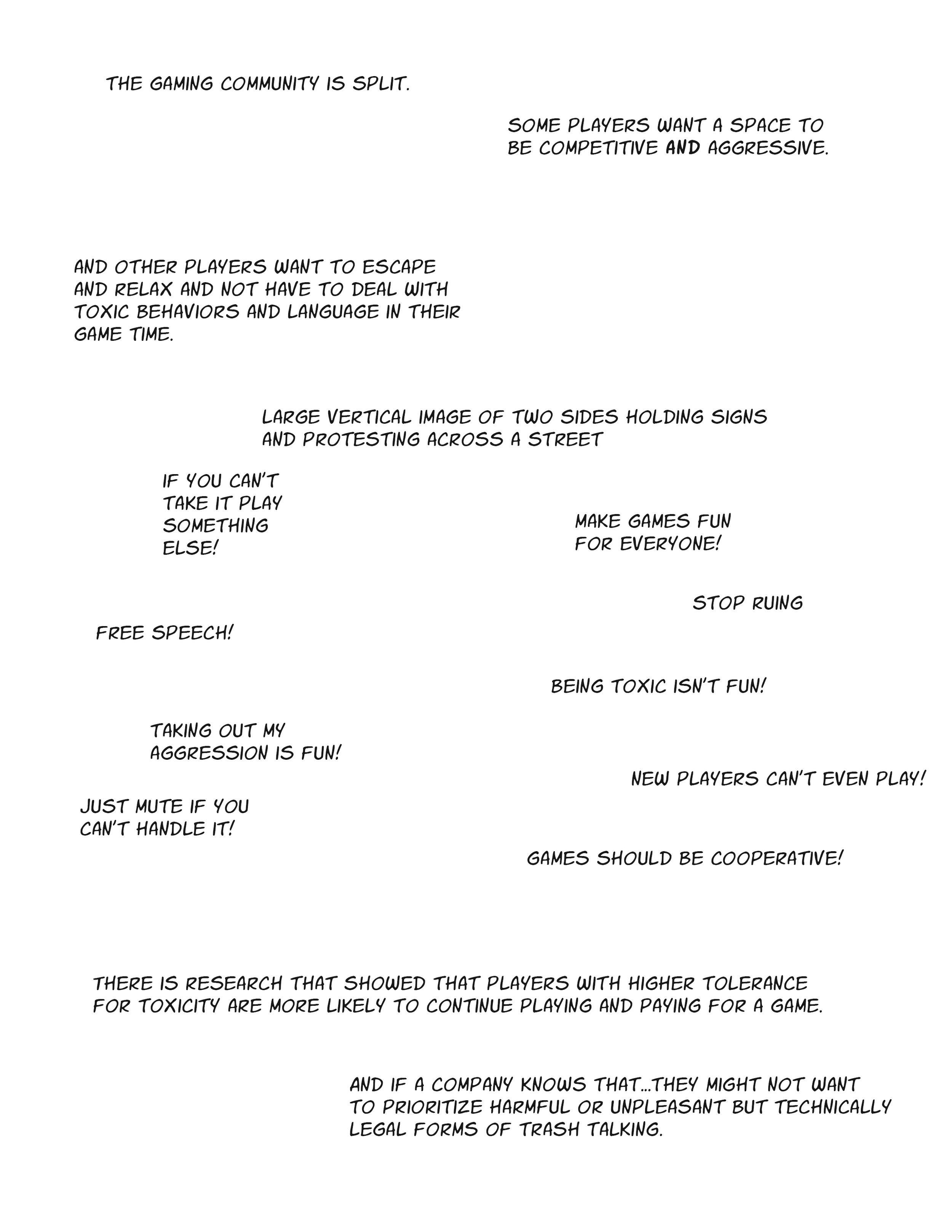 “I have different expectations for trash talking. Trash talking in Overcooked ruins the game but I expect trash talking in Spec Ops: The Line.” *Overcooked is a collaborative cooking game and Spec Ops: The Line is a first person shooter