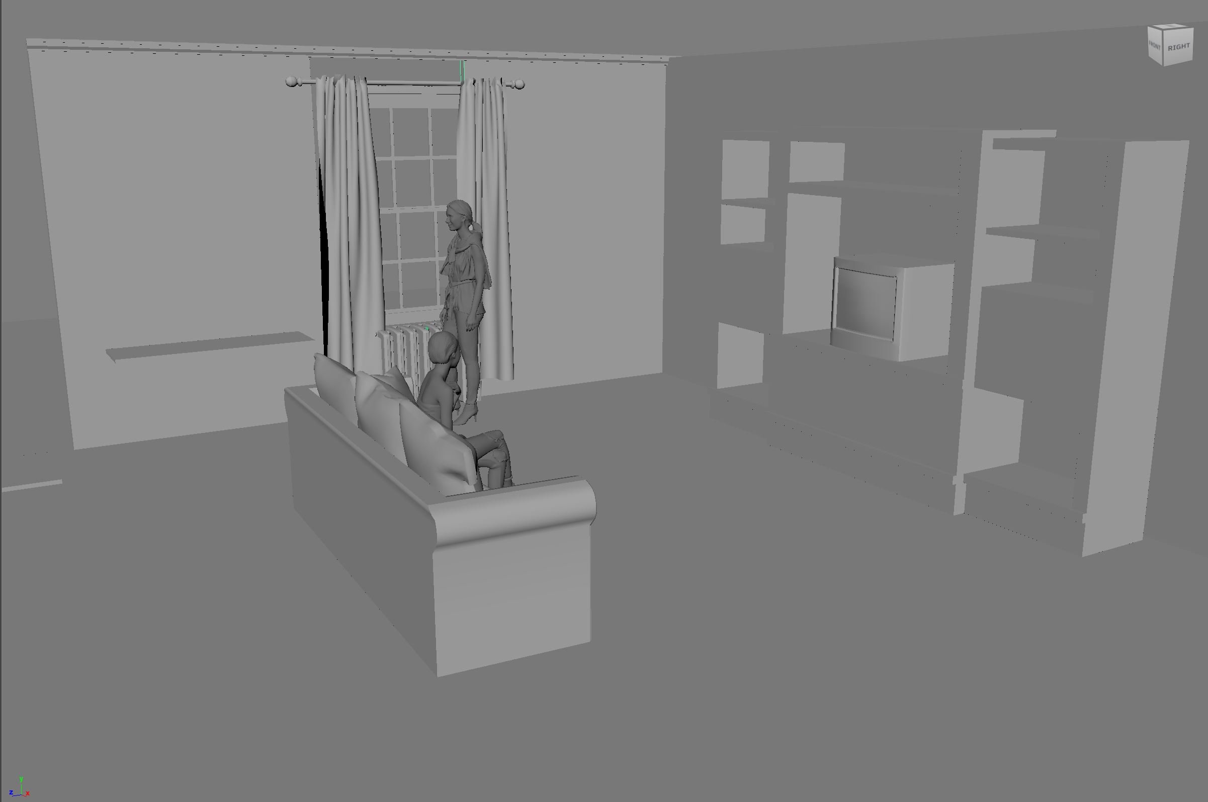 Emily Subr modeled a 3D interior environment for The Gamer comic to use as environment drawing reference when placing the character.