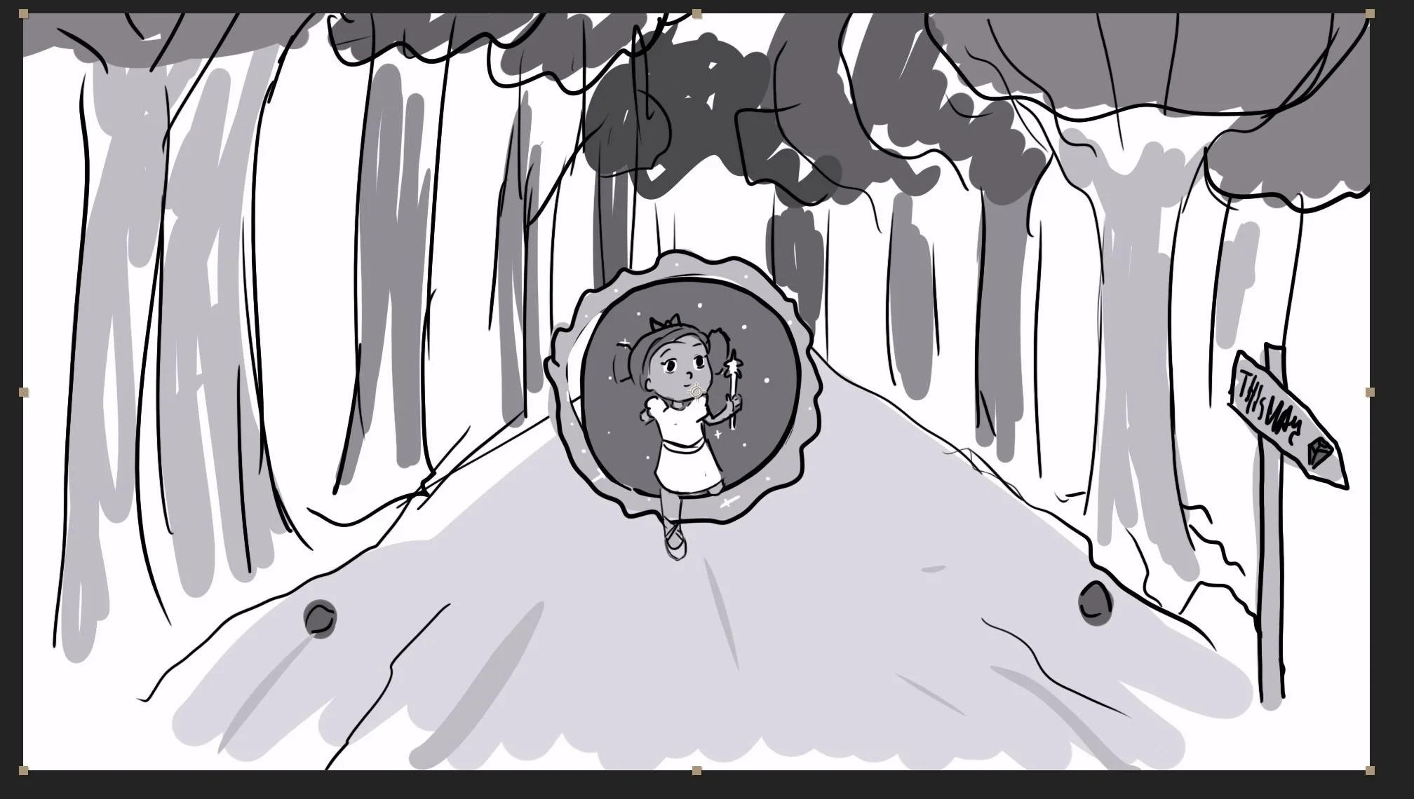 Digital Blue Pencil Layout + Animatic Rough Draft, Procreate